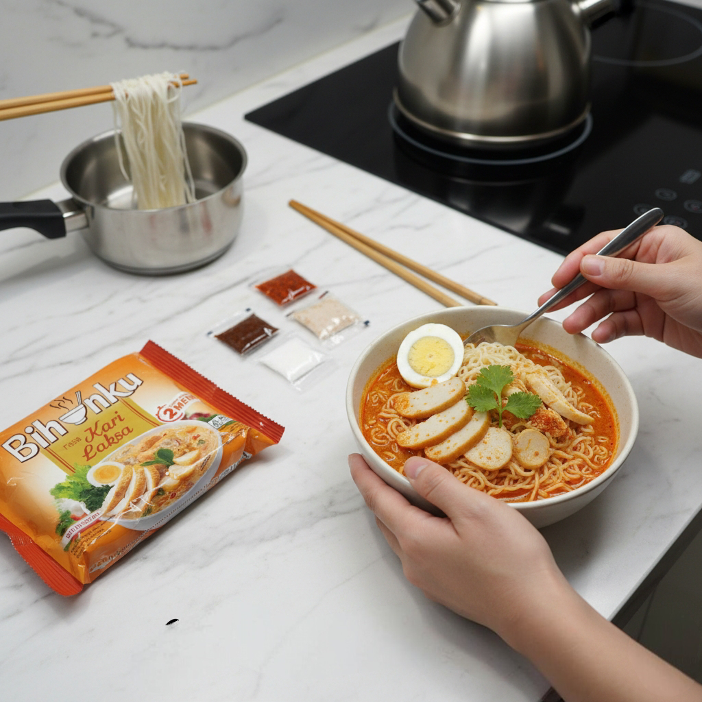 This Curry Laksa variant brings you the comforting taste of Southeast Asian street-style laksa in a practical, instant form. The soft bihun pairs beautifully with a rich, aromatic curry broth, infused with fragrant spices and a creamy coconut milk touch. It’s incredibly satisfying when enjoyed hot—perfect for sudden hunger, chilly weather, or when you’re craving a fast comfort food that still feels special.