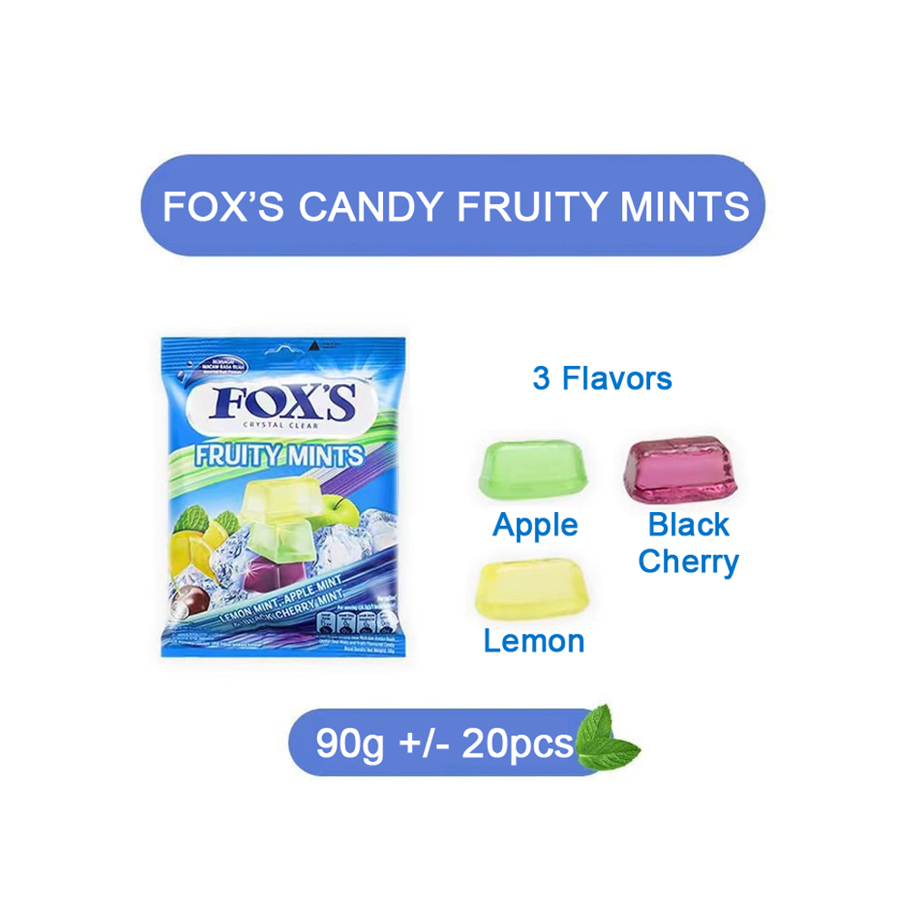 3. Fox’s Fruity Mints Crystal-clear candies with a refreshing blend of sweet fruity flavor and cooling mint. Perfect for freshening your breath, lifting your mood, or simply enjoying anytime, anywhere. 🍬✨