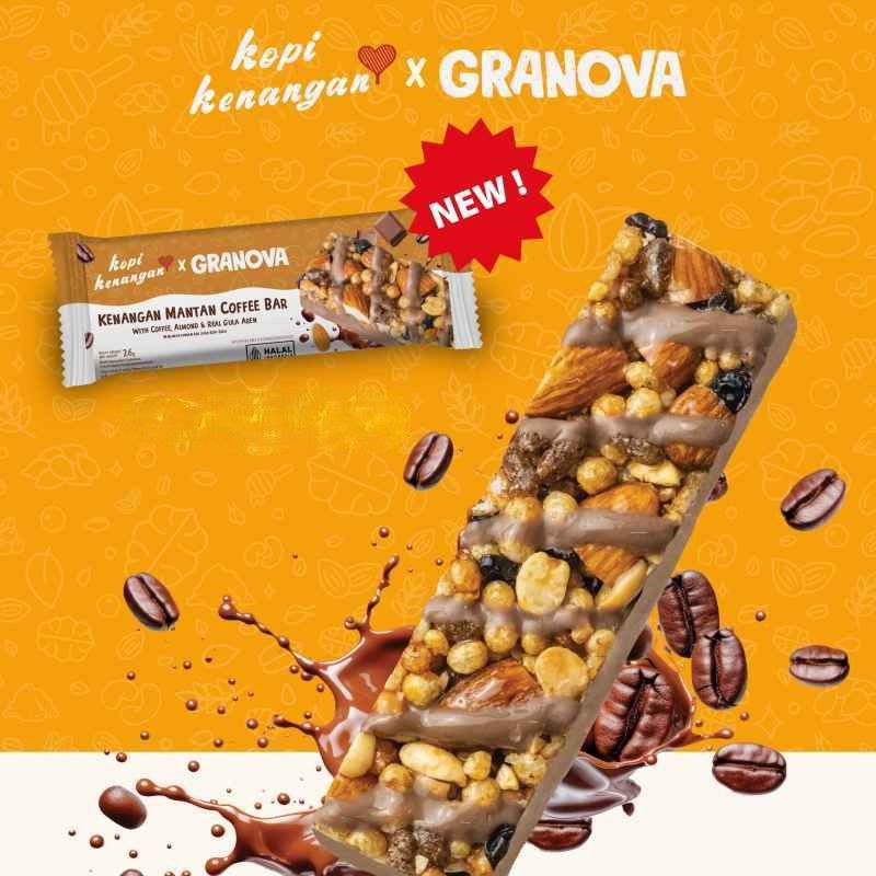Home Bakery & Breakfast Cereals, Granola & Bars GRANOVA Coffee Energy Snack Bar with Almond and Palm Sugar 26gx2pcs Halal