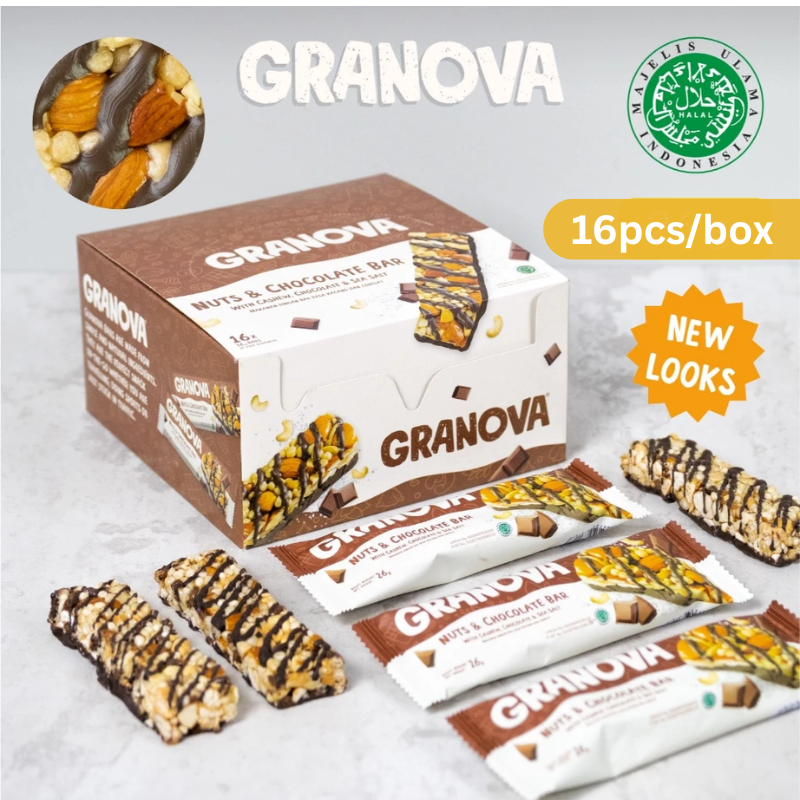 Home Bakery & Breakfast Cereals, Granola & Bars GRANOVA Nuts & Chocolate Energy Bar with Cashew, Chocolate & Sea Salt 26gx2pcs Halal