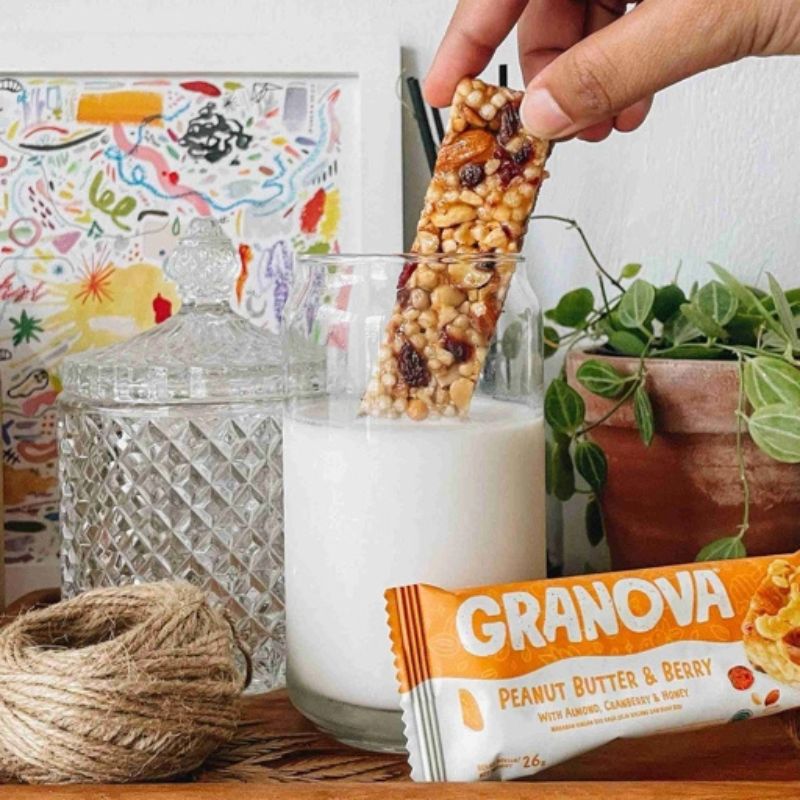 Snack smart with Granova Snackbars, the healthy and delicious alternative for guilt-free snacking! Each bar is packed with a nutritious blend of almonds, peanuts, rice crispies, and dried cranberries, all held together with rich, creamy peanut butter and natural honey.
