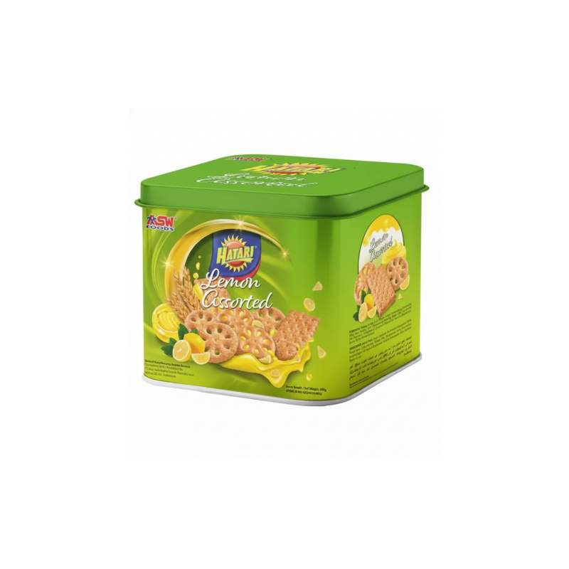 Hatari Lemon Assorted Biscuits are delicious, crunchy biscuits made from high-quality ingredients and processed hygienically to deliver a satisfying texture and taste. Featuring a refreshing lemon flavor, these biscuits are loved by all ages—from kids to adults.