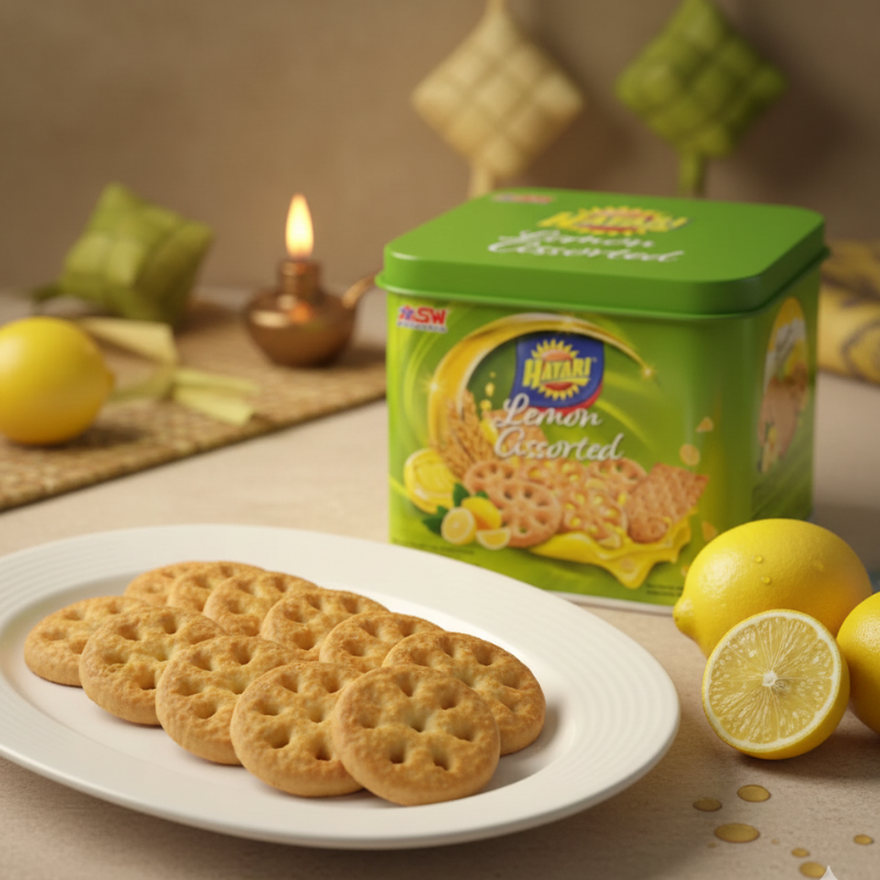 Home Snacks, Biscuits & Cookies Biscuits, Cookies & Crackers HATARI Lemon Assorted Biscuits 350g Halal