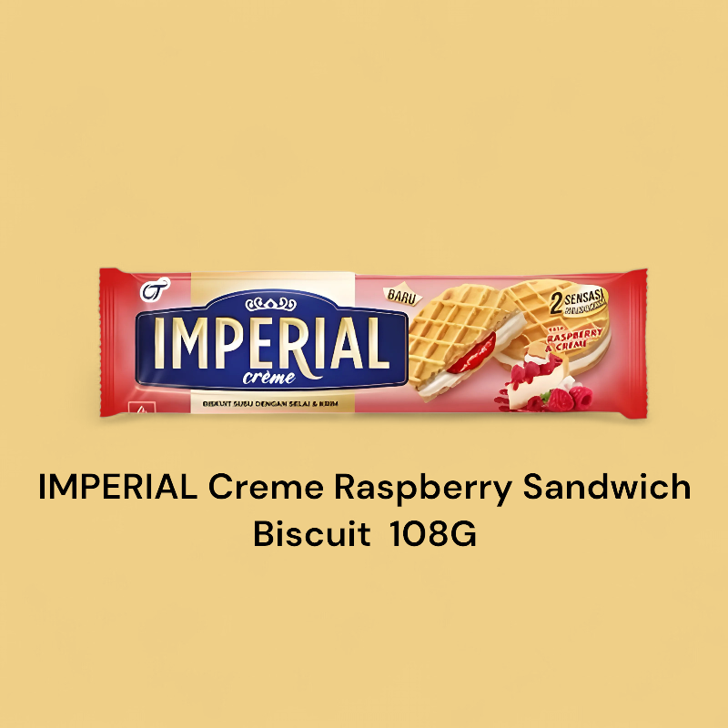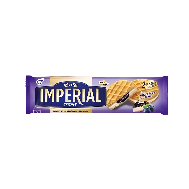 Home Snacks, Biscuits & Cookies Biscuits, Cookies & Crackers IMPERIAL Raspberry Cream / Peach / Blueberry Sandwich Biscuit 27g Halal