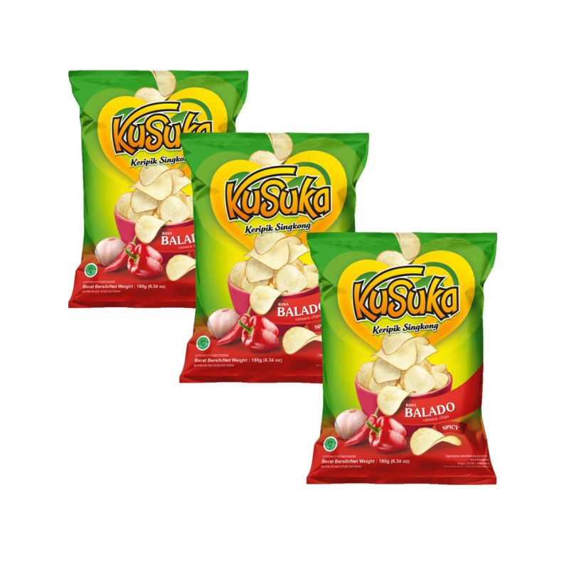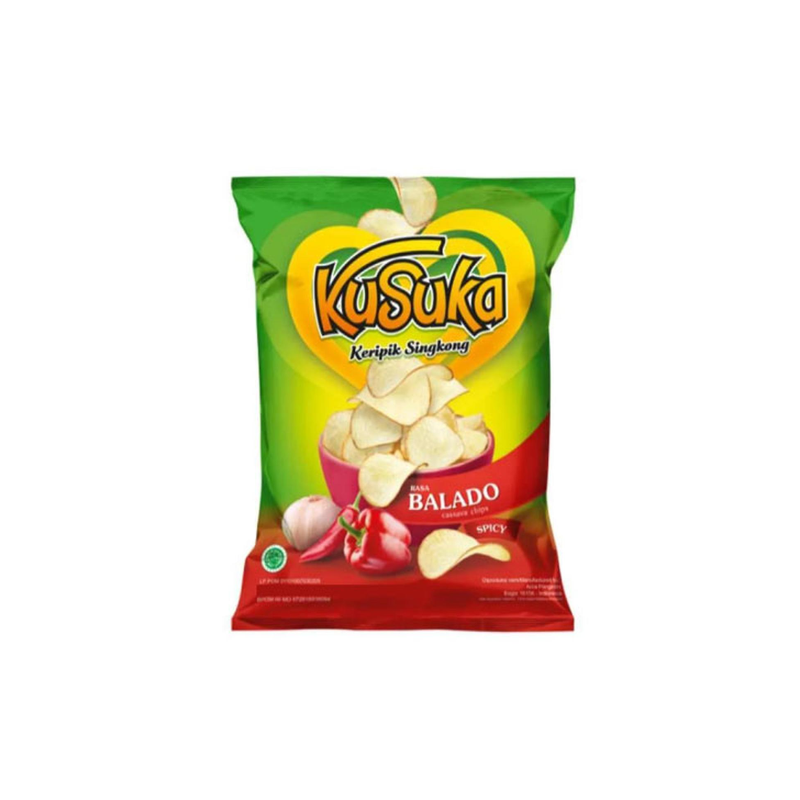 Kusuka Cassava Chips Balado/Spicy are crispy and savory cassava chips made from high-quality cassava without preservatives or coloring. These chips are processed using modern and hygienic methods, coated in a savory spicy Balado seasoning for a delicious and enjoyable taste sensation, making them perfect as a snack for casual or group gatherings.