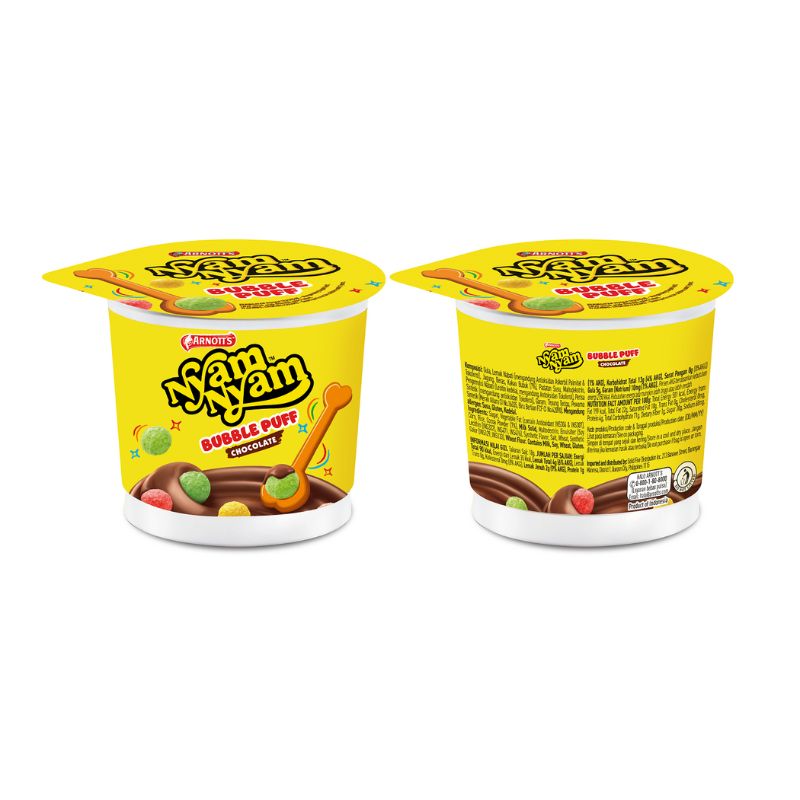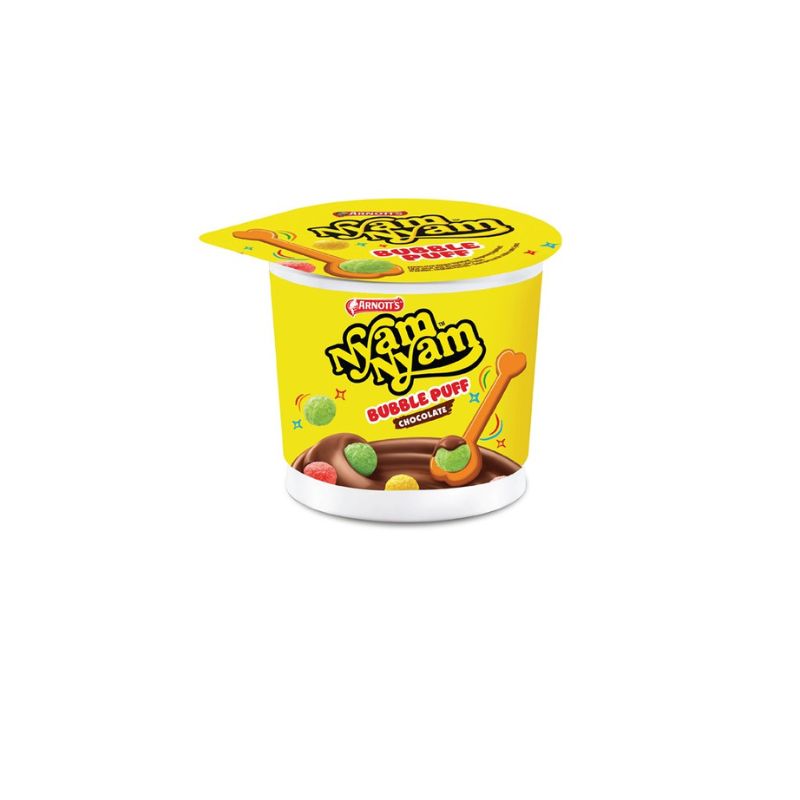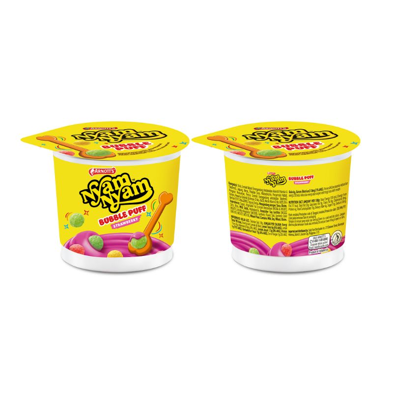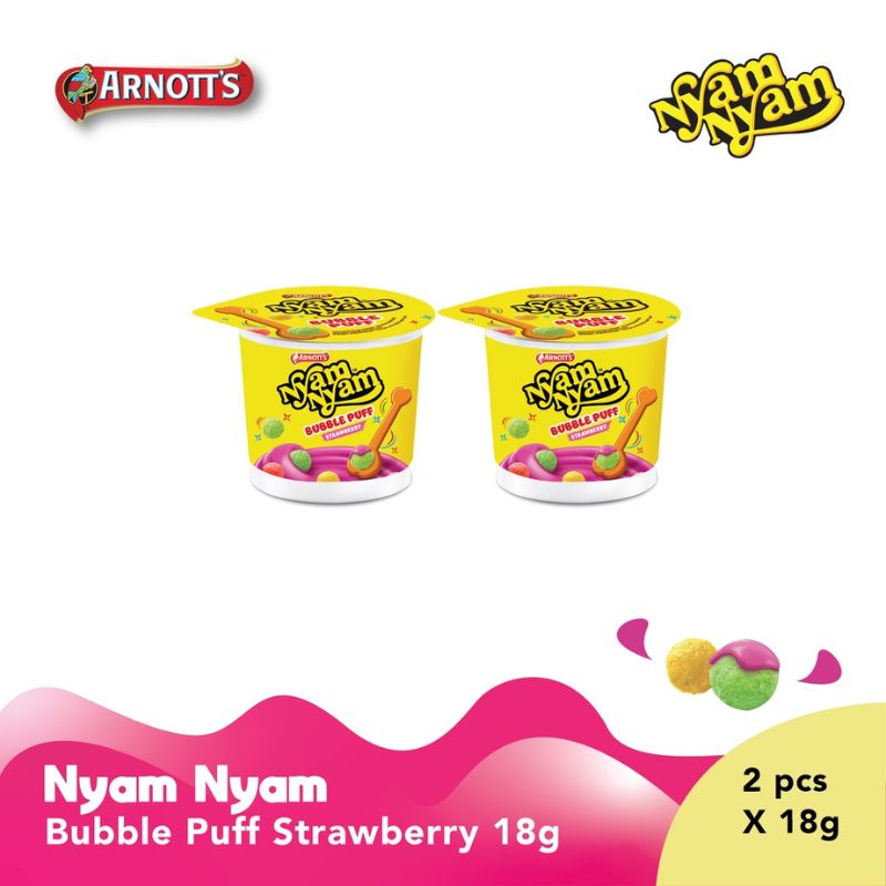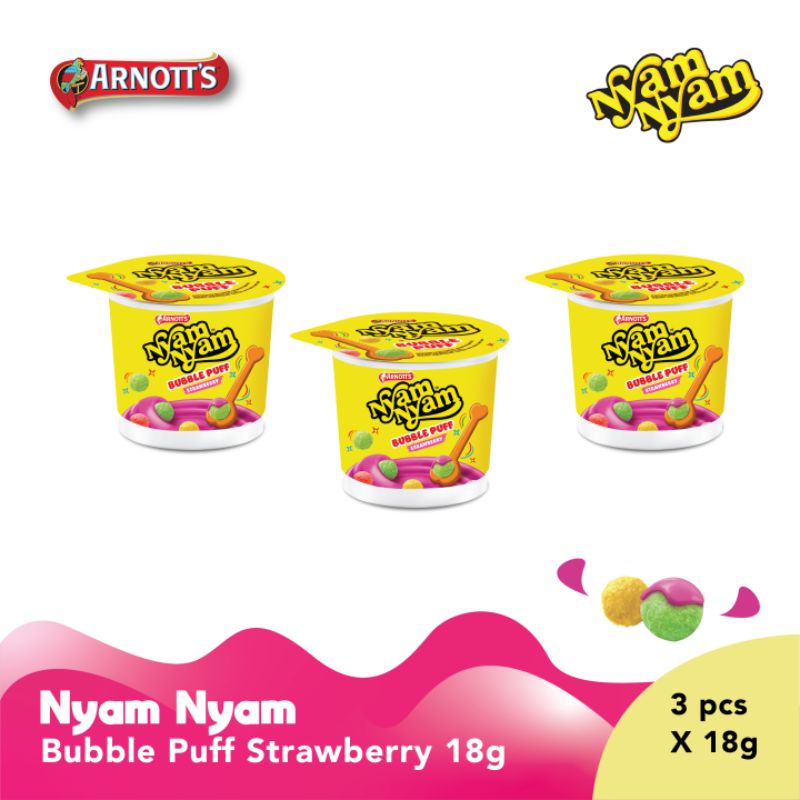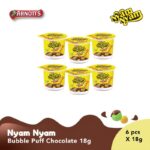 Looking for a snack that’s fun and tasty for kids? NyamNyam Bubble Puff Chocolate / Strawberry is a delightful treat featuring colorful crispy puff grains paired with sweet chocolate/ Strawberry jam in a unique dip-and-stick format. Just dip the plastic stick into the creamy chocolate, pick up the crunchy puff balls, and enjoy the delicious combo!