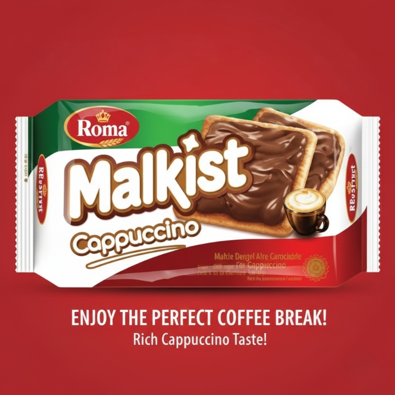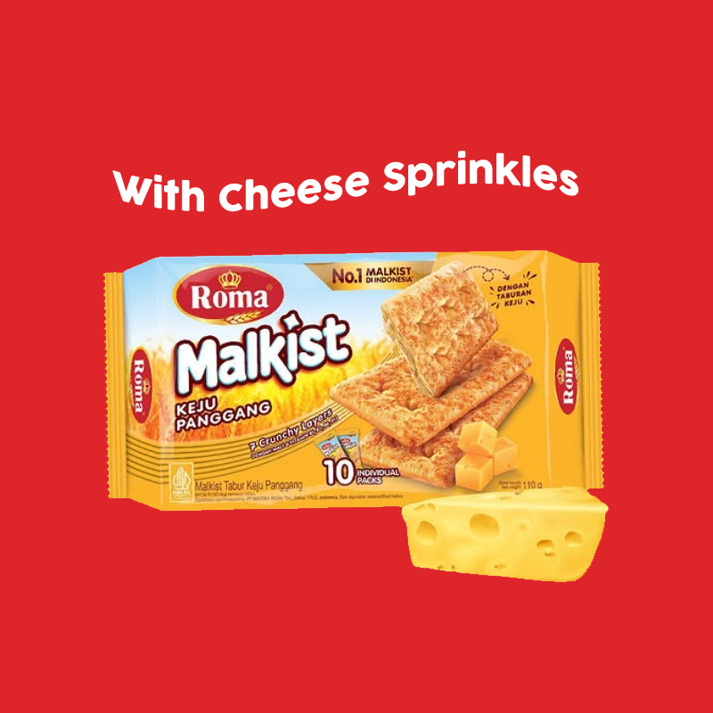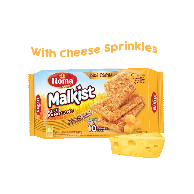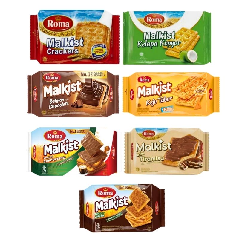 Home Snacks, Biscuits & Cookies Biscuits, Cookies & Crackers ROMA Malkist Baked Cheese / Beef Floss / Belgian Chocolate / Sweet Sugar / Cappuccino / Coconut Chocolate 105g Halal