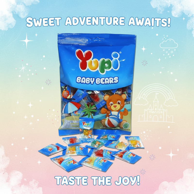 Yupi Baby Bears Gummy Candy 110 g is one of the most loved gummy treats from Yupi, Indonesia’s leading gummy candy brand. Known for its soft, chewy texture and fun shapes, Yupi has captured the hearts of candy lovers across the country—and Yupi Baby Bears is one of its iconic variants.